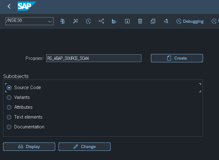 1. T-CODE:SE38 에서 RS_ABAP_SOURCE_SCAN 을 입력하고 실행함.