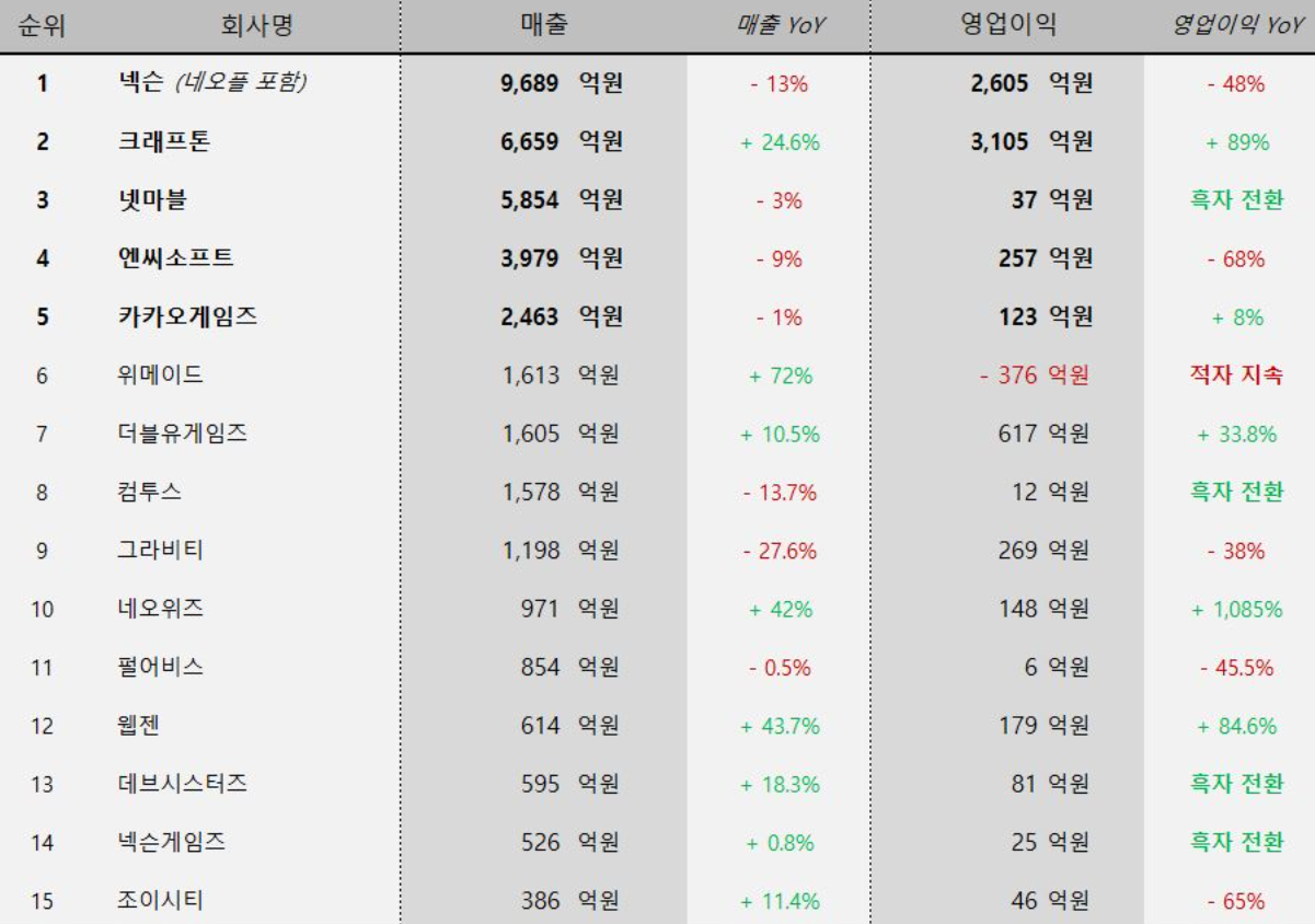 ■ 2024년 1분기 게임회사 매출순위 ( 3N, SK2 주목 )