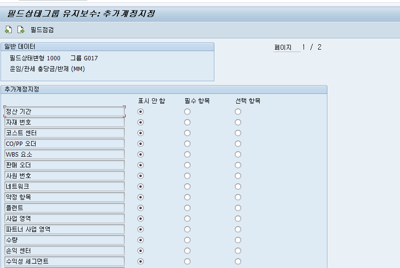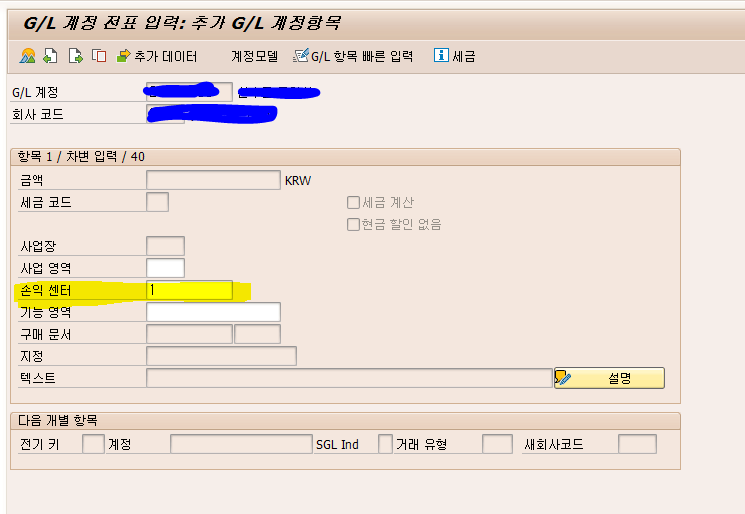Goal : 손익센터라는 필드를 전표생성 시에 추가하여 필수값으로 하려고 함.