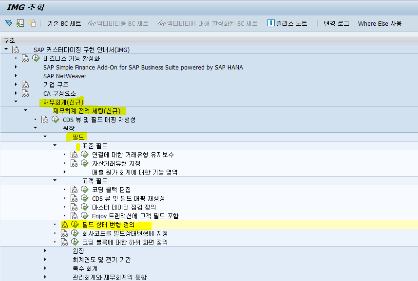 다른 모듈과는 다르게 FI는 IMG 셋팅으로 필드를 추가할 수 있어 편리하다.
