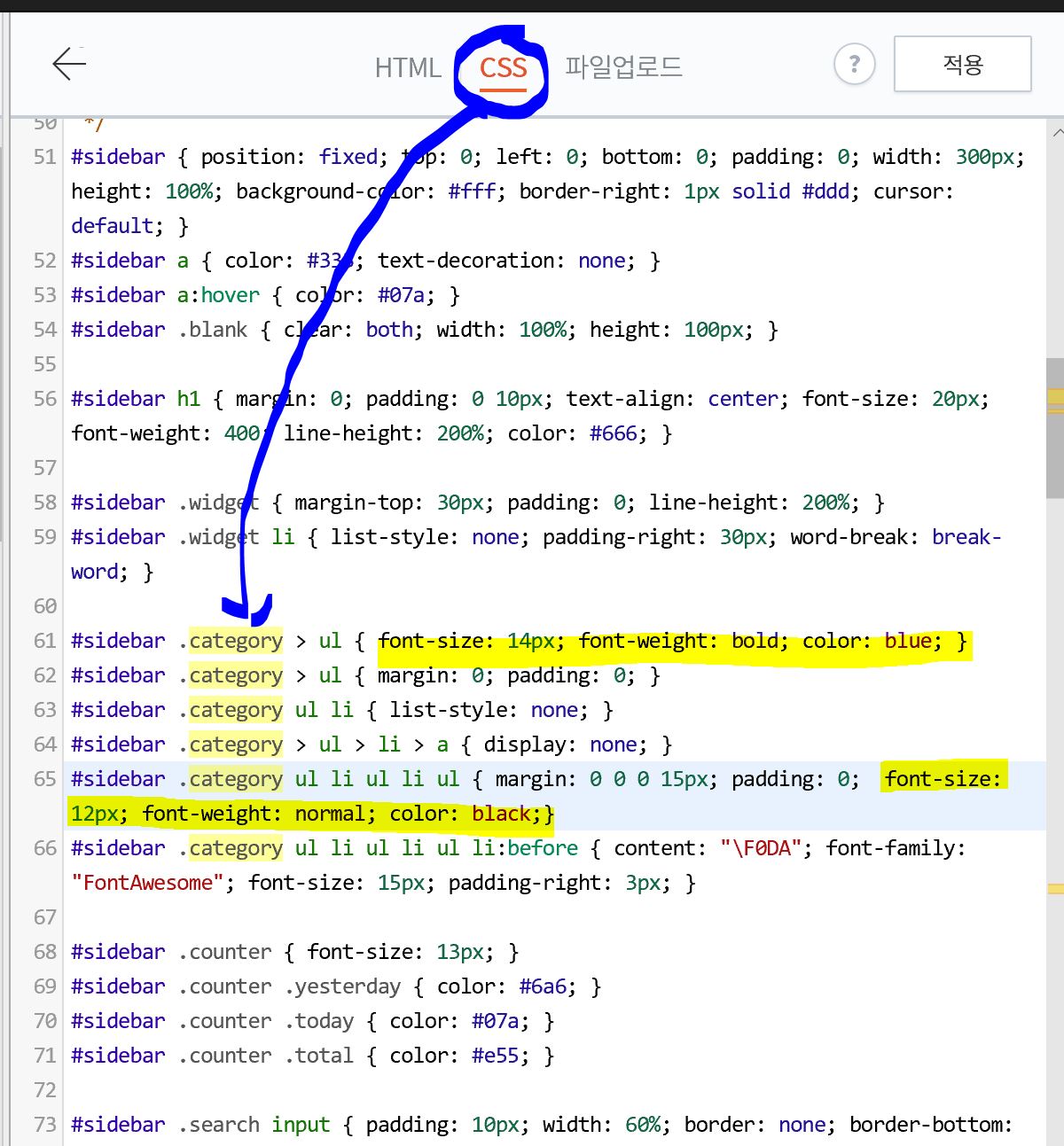 5.아래 그림과 같이 font-size를 넣어 크기를 변경한다.