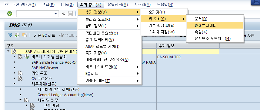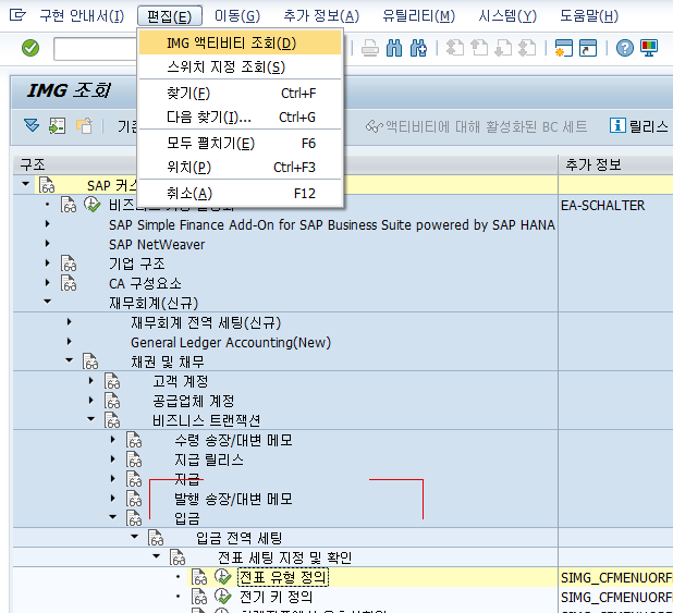 SAP IMG에서 메뉴별 T-CODE보는 방법